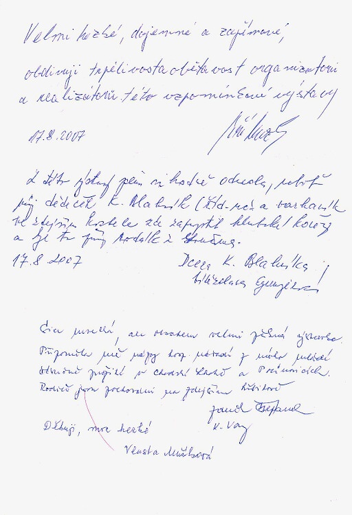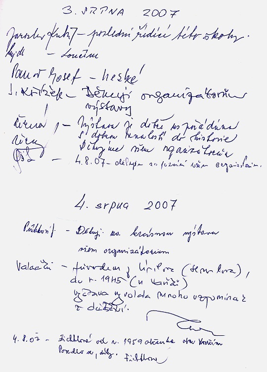 Výstava Loučim - historie a současnost byla otevřena 3. srpna, den před oslavami a k vidění byla do 17. září. Kolik lidí se přišlo podívat konkrétně už zjistíme jen těžko, možná jsme měli dávat nějaké vstupenky, samozřejmě zdarma. V návštěvní knize je popsáno 10 stránek, které jsem naskenoval a jsou ke zhlédnutí. Po otevření v novém okně nebo panelu jsou zápisy celkem slušně čitelné...