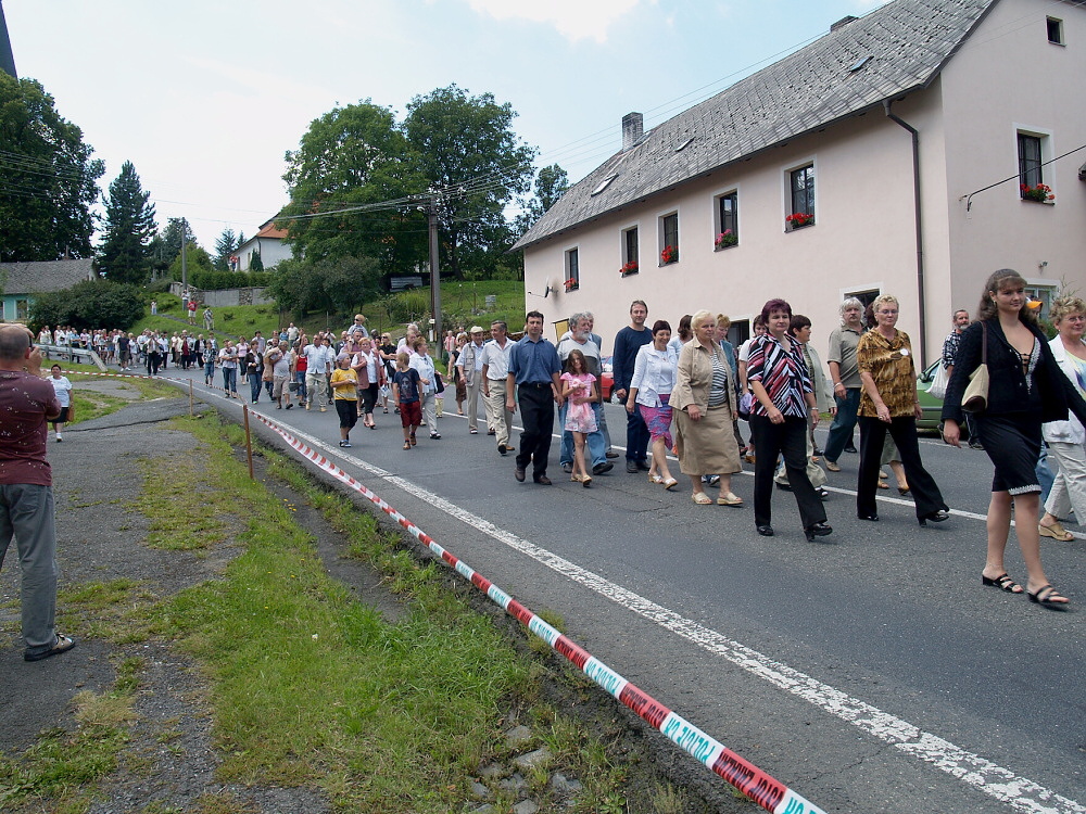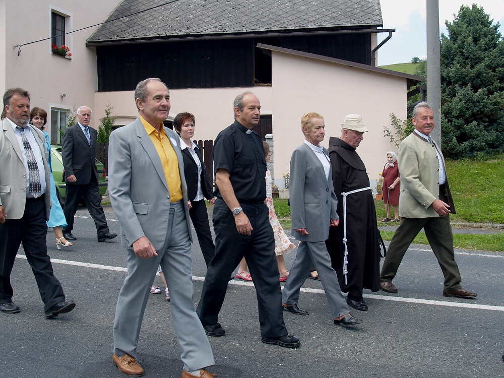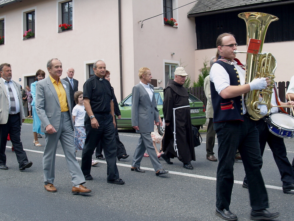 V našem kostele Narození Panny Marie se jako první akce oslav konala slavnostní bohoslužba, kterou celebroval náš pan farář a kdyňský vikář Miroslav Kratochvíl. Potom se před kostelem seřadil průvod a vydal se na náves.