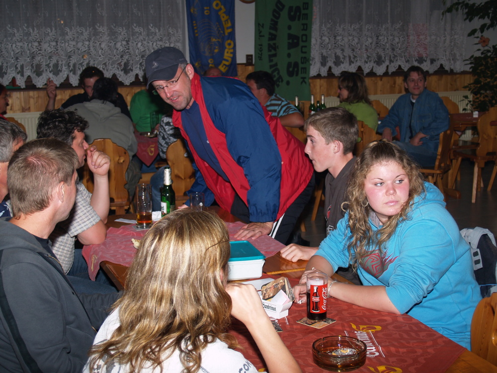 Po každém turnaji je v restauraci pana Matějky (viz odkaz) pouťová zábava. Letos hrála skupina Orient Expres z Babylonu a zahrála všechno - od country přes lidovky až po rock nebo pop. V sále všichni zapomněli na nevlídné dopolední počasí (odpoledne už svítilo sluníčko) a bavili se. Návod k prohlížení: klikni na první obrázek. Po jeho zvětšení naroluj pod obrázek. Nastav si čas automatického procházení. Pokud klikneš na prohlížený obrázek, načte se v IE zvětšený v novém okně (od verze 7.0. můžeš zvolit novou záložku), v prohlížeči Mozilla Firefox v novém panelu.