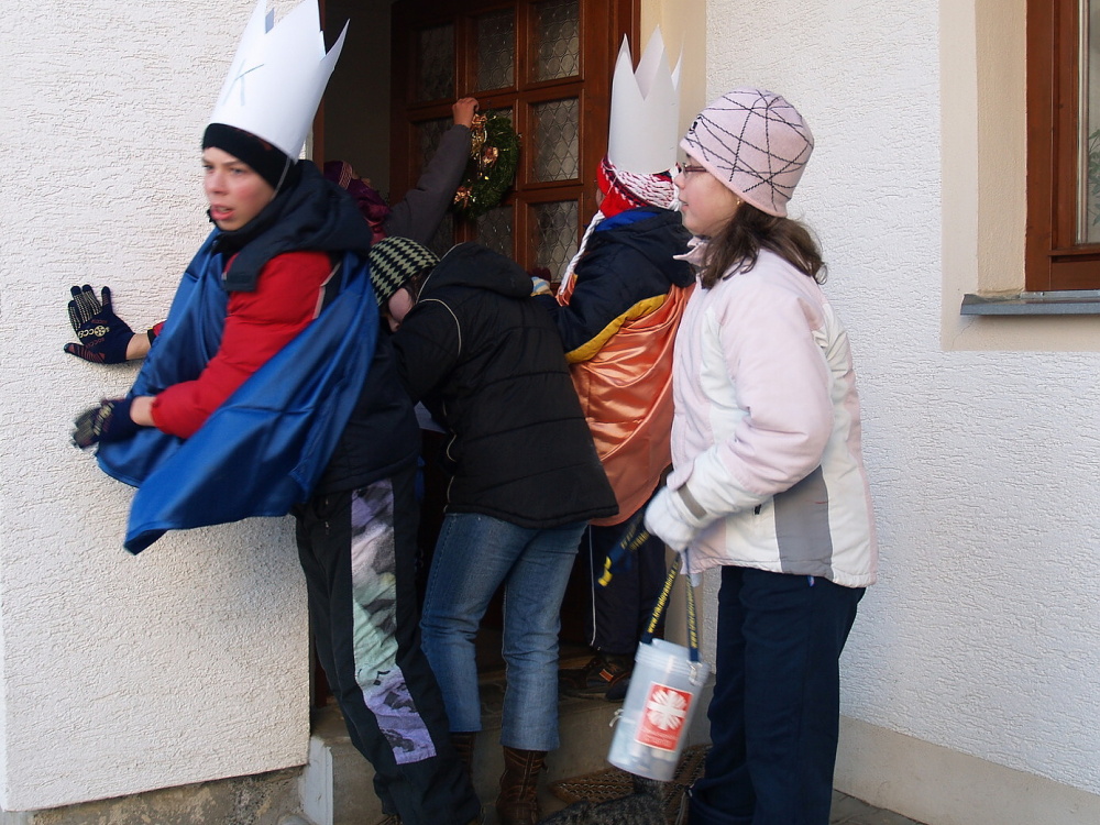 Šestý leden čili svátek Tří králů vyšel tento rok na úterý a proto na tříkrálovou charitativní sbírku vyrazily děti už v sobotu třetího. Listování albem: myší najeď do obrázku. Pravá šipčička posouvá obrázek dopředu, levá zpět. Nenápadný křížek vlevo nahoře fotku zvětší.