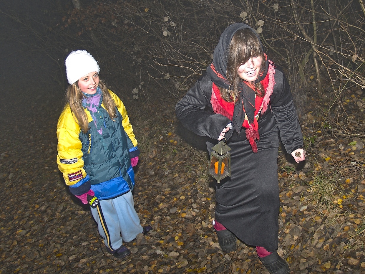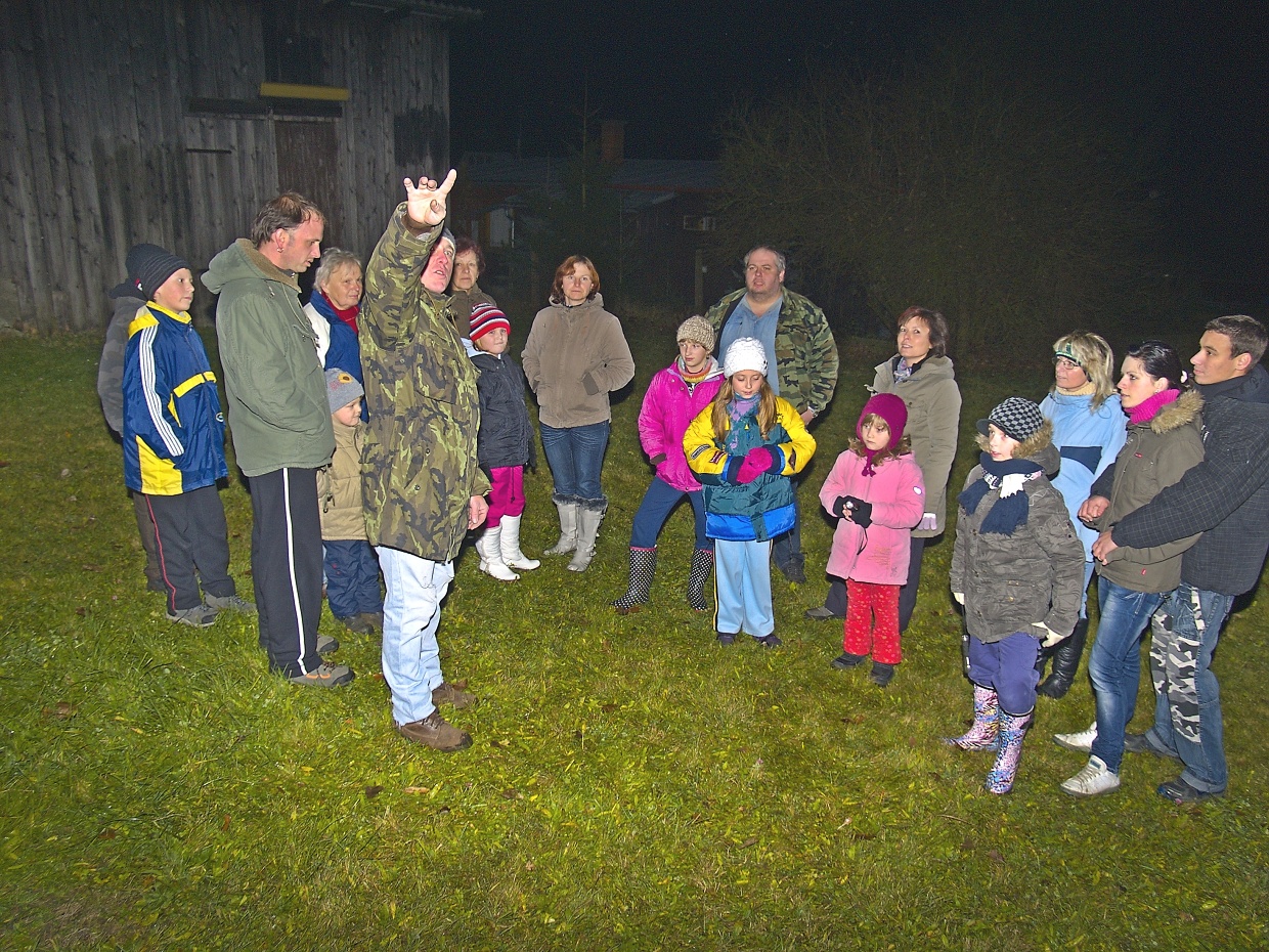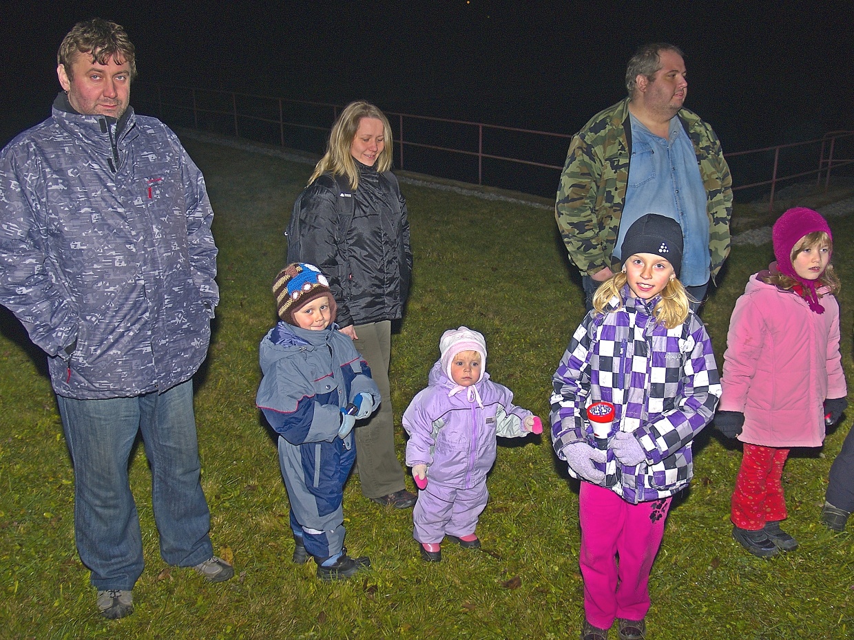 V sobotu 17. listopadu se vydala skupinka dětí, většinou doprovázená svými rodiči, do lesů kolem Loučimi, aby prokázala svojí odvahu na strašidelné stezce. Protože jenom odvážný člověk - nebo kluk či holka - může vzvládnout vybafnutí takové strašidelné postavy, jako byla hned na prvním stanovišti (obrázek č. 6)! Tmou, která se navíc mísila s mlhou, bylo nutno dojít krajem lesa až k chatám, kde číhala další strašidla (obrázky 11 - 17) a kdo z těch nejmenších, jako je třeba Eliška Steidlová, které chybí pár týdnů do dvou let, anebo čtyřletý Aleš Bláha nebo o rok starší Ondřej Soukup mohl tušit, že na louku pod lesem je opravdu jen pár kroků, když všechna ta světýlka a zvuky byly tak strašidelné! Magie večera zasáhla i fotoaparát reportéra a tak se na některých fotkách (10, 13, 16, 18, 22 a 24) objevili opravdoví duchové! A nedosti na tom, kouzla a čáry zapříčinily i zmizení některých strašidel dole ve vsi z paměťové karty foťáku, a to dokonce i v klubovně po závěrečné řeči královny Žofie, manželky krále Václava IV, což je na pováženou! Pro příště bude nutno podrobněji prozkoumat příčiny těchto paranormálních jevů! Zatím se spokojme s tím, co máme a taky s dojmy, které uspořádání akce několika členy místního Sokola zanechaly na jejích účastnících. A ty byly jednoznačně kladné!