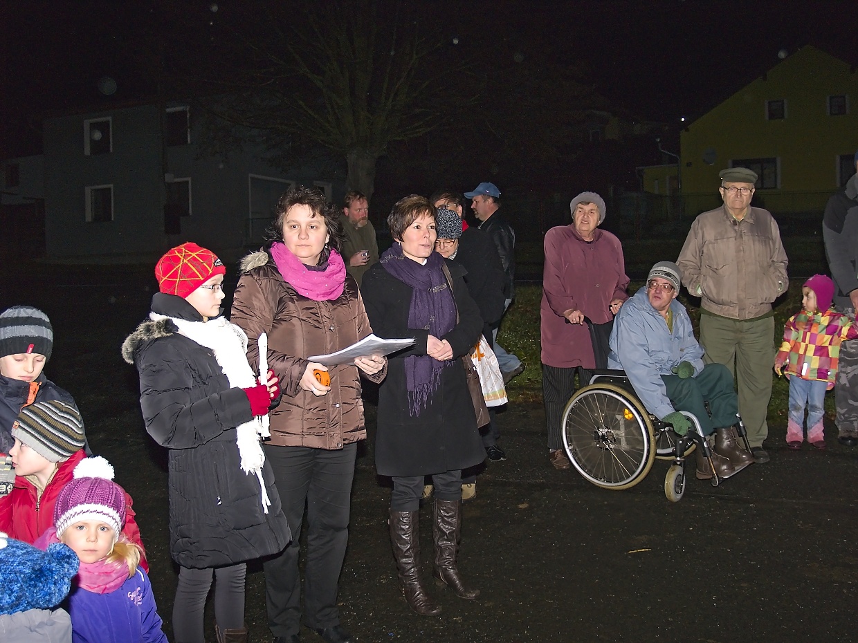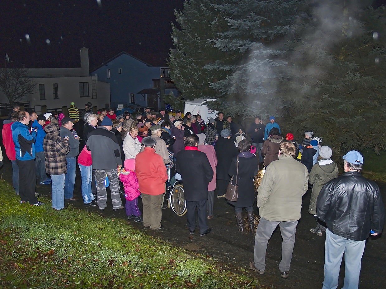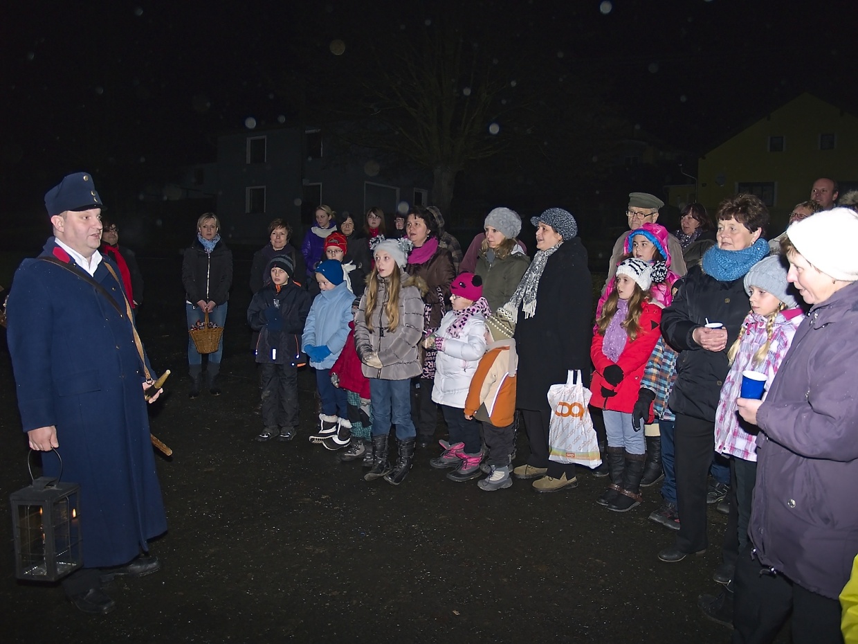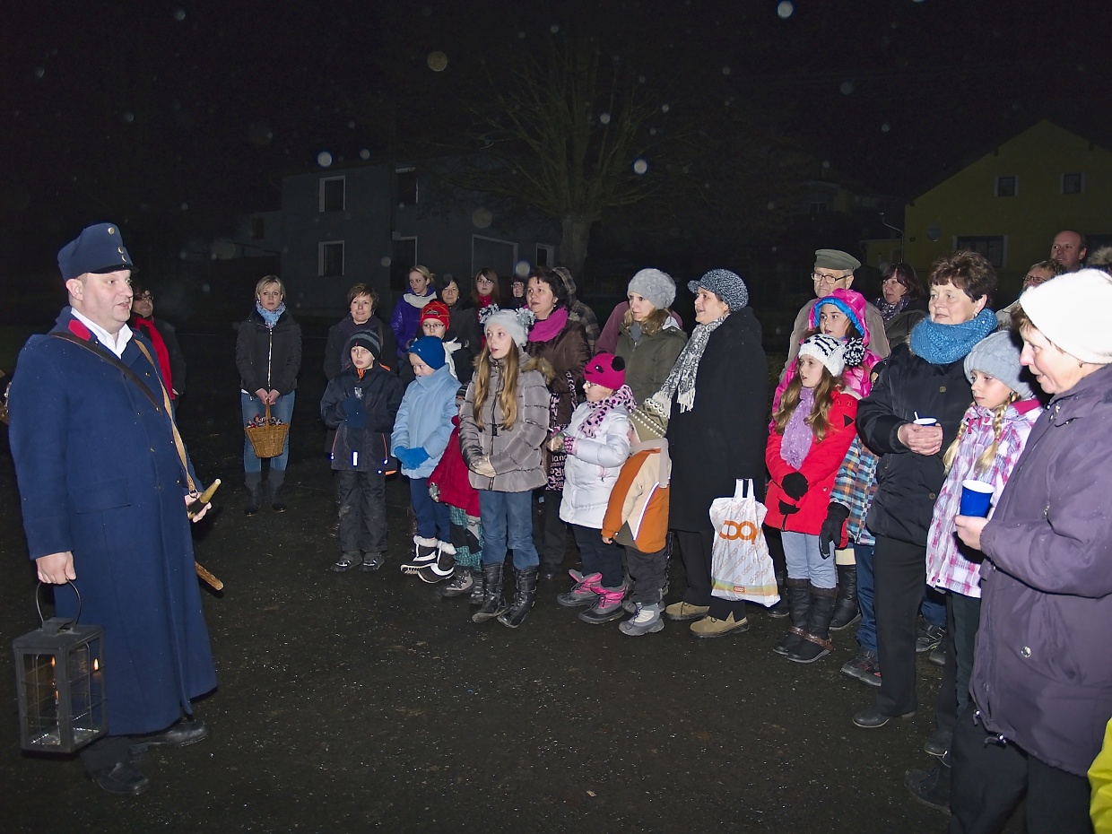 Článek pro Domažlický deník vyjde v pondělí 8.12. V Loučimi zpívali v kostele i na návsi u stromku Loučim – Druhý adventní víkend pořádají už několik let místní sokolové vánoční koncert v kostele Narození Panny Marie a v sobotu 6. prosince tomu nebylo jinak. Radost, ale hlavně vánoční atmosféru přijel do Loučimi udělat dětský pěvecký sbor Radost ze Kdyně a během téměř hodinového vystoupení se jeho členům tento záměr určitě zdařil. Pod vedeném učitelky Jaroslavy Václavovičové předvedlo 35 dětí se sólistkami Karolínou Löffelmannovou a Šárkou Peštovou svůj vánoční repertoár. Odměnou jim za to byl potlesk zaplněného kostela. „Mně se to líbilo moc,“ zhodnotila výkon dětí loučimská kronikářka Marie Friebelová, „navíc ten sbor znám už léta, zpívat tam chodil i náš dneska třicetiletý syn Lukáš.“ Všem návštěvníkům koncertu popřála pěkné vánoce i poklidný čas předvánoční starostka Sokola Loučim Vladimíra Kacerovská a zároveň je pozvala na náves, kde se vzápětí na to opět zpívalo. Nejprve to byly koledy v podání místních dětí, které s nimi připravila varhanice místního kostela Martina Matějková. Následoval operní hlas tenora Milana Suleje a snad největší radost měly nejen děti, ale i dospělí z opětovné návštěv domažlického ponocného Romana Holuba, který zazpíval taky. A nejen to, předvedl svoji halapartnu, roh na oznamování času a nechal děti sfouknout svíčku ve své lucerně – jen příběh o panně, kterou po tomto aktu čekají za rok vdavky vzhledem k věku dětí nevyprávěl… To všechno probíhalo pod stromem, ověšeným rozsvícenými modrými žárovičkami s velkou hvězdkou v koruně. Ještě než starostka obce Jana Dirriglová popřála hezké vánoce i štěstí v novém roce všem převážně místním, oznámila pro příští rok malou změnu: „Vzhledem k tomu, že dnešní vánoční strom narostl do hodně velkých rozměrů, zasadíme během roku hned vedle menší, na který bude taky lépe vidět.“ V poněkud sychravém počasí, kdy místo sněhových vloček padalo z nebe mrholení, přišel vhod jablečný čas i svařené víno, které sokolové připravili a nakonec došlo i na vánoční přáníčka, jichž k radosti dětí i dospělých vzlétlo hned několik.