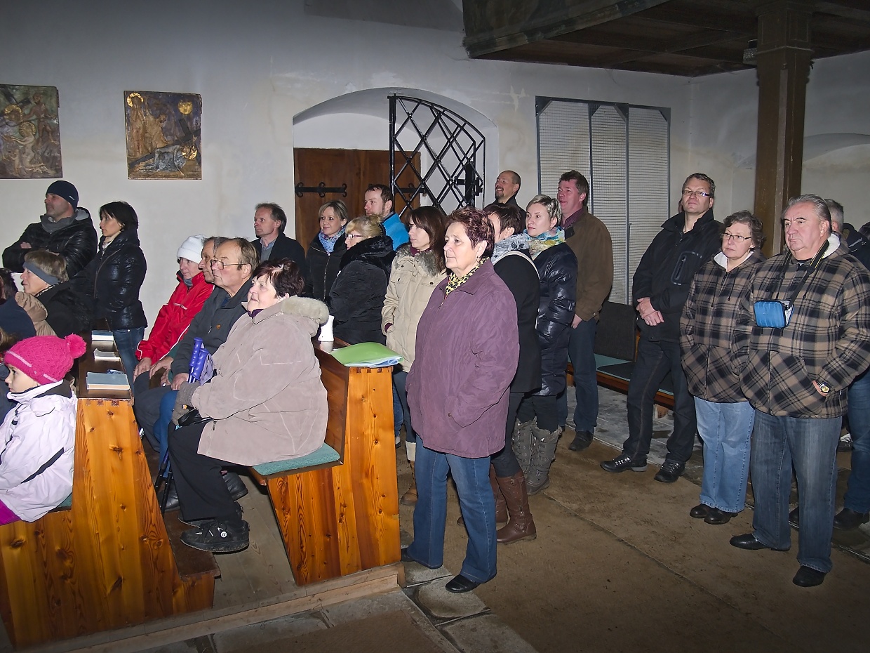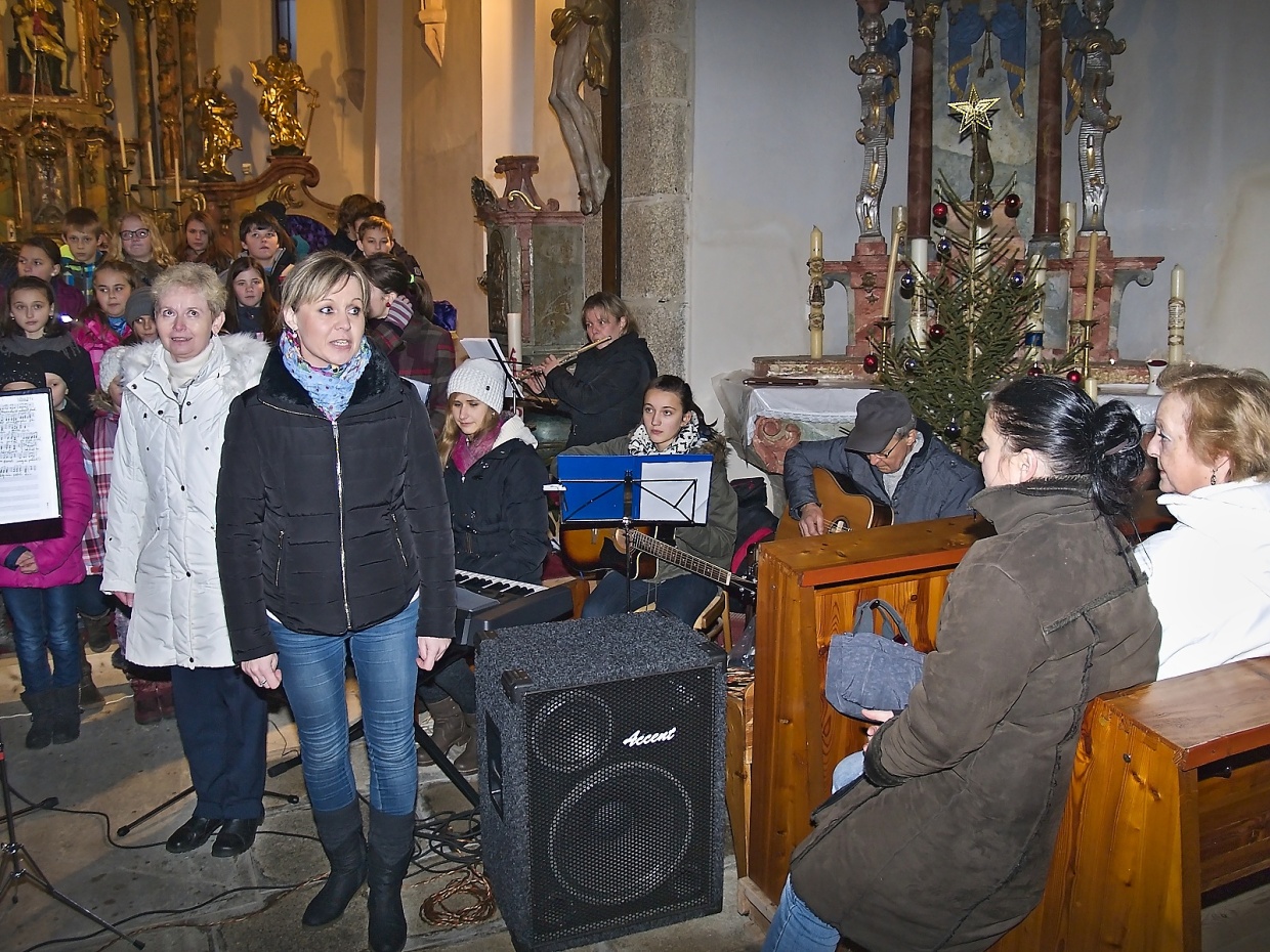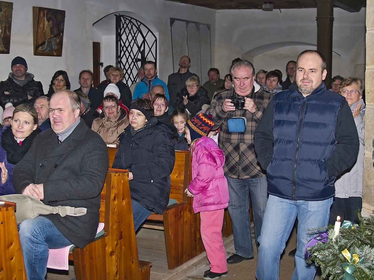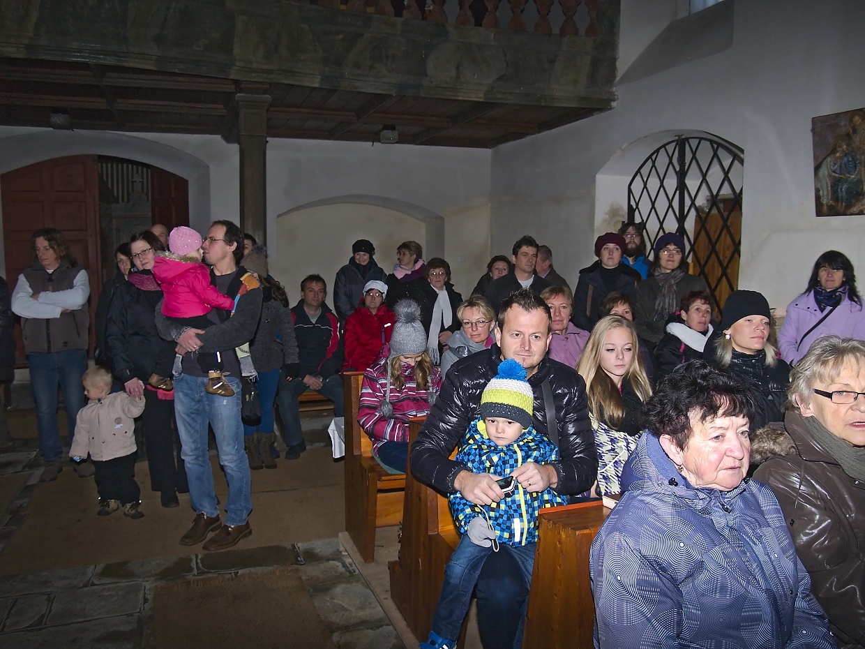 Článek pro Domažlický deník vyjde v pondělí 8.12. V Loučimi zpívali v kostele i na návsi u stromku Loučim – Druhý adventní víkend pořádají už několik let místní sokolové vánoční koncert v kostele Narození Panny Marie a v sobotu 6. prosince tomu nebylo jinak. Radost, ale hlavně vánoční atmosféru přijel do Loučimi udělat dětský pěvecký sbor Radost ze Kdyně a během téměř hodinového vystoupení se jeho členům tento záměr určitě zdařil. Pod vedeném učitelky Jaroslavy Václavovičové předvedlo 35 dětí se sólistkami Karolínou Löffelmannovou a Šárkou Peštovou svůj vánoční repertoár. Odměnou jim za to byl potlesk zaplněného kostela. „Mně se to líbilo moc,“ zhodnotila výkon dětí loučimská kronikářka Marie Friebelová, „navíc ten sbor znám už léta, zpívat tam chodil i náš dneska třicetiletý syn Lukáš.“ Všem návštěvníkům koncertu popřála pěkné vánoce i poklidný čas předvánoční starostka Sokola Loučim Vladimíra Kacerovská a zároveň je pozvala na náves, kde se vzápětí na to opět zpívalo. Nejprve to byly koledy v podání místních dětí, které s nimi připravila varhanice místního kostela Martina Matějková. Následoval operní hlas tenora Milana Suleje a snad největší radost měly nejen děti, ale i dospělí z opětovné návštěv domažlického ponocného Romana Holuba, který zazpíval taky. A nejen to, předvedl svoji halapartnu, roh na oznamování času a nechal děti sfouknout svíčku ve své lucerně – jen příběh o panně, kterou po tomto aktu čekají za rok vdavky vzhledem k věku dětí nevyprávěl… To všechno probíhalo pod stromem, ověšeným rozsvícenými modrými žárovičkami s velkou hvězdkou v koruně. Ještě než starostka obce Jana Dirriglová popřála hezké vánoce i štěstí v novém roce všem převážně místním, oznámila pro příští rok malou změnu: „Vzhledem k tomu, že dnešní vánoční strom narostl do hodně velkých rozměrů, zasadíme během roku hned vedle menší, na který bude taky lépe vidět.“ V poněkud sychravém počasí, kdy místo sněhových vloček padalo z nebe mrholení, přišel vhod jablečný čas i svařené víno, které sokolové připravili a nakonec došlo i na vánoční přáníčka, jichž k radosti dětí i dospělých vzlétlo hned několik.