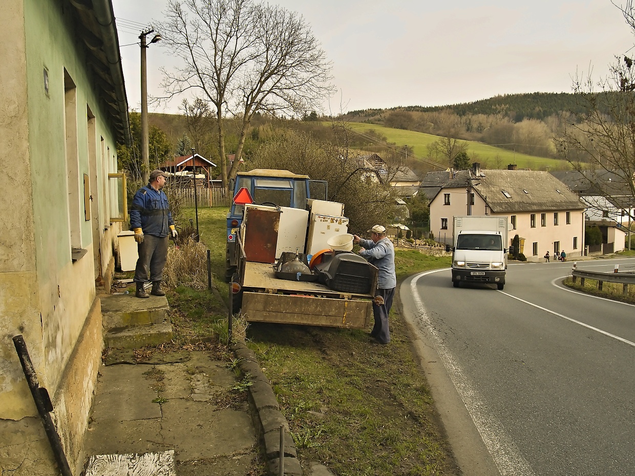 V sobotu 22. března 2014 začaly první práce na likvidaci domku čp. 46 v zatáčce pod kostelem, resp. pod márnicí. Poslední nájemníci jej opustili na podzim, nechali na něm dluh, takže domek - jestli se tomu ještě pořád dá takhle říkat - šel do dražby. Aby se nestal předmětem spekulací různých vykutálených individuí, kteří něco takového koupí, vyklopí na stěny kýbl vápna a nabídnou to jako ubytovnu pro sociálně slabší občany, kteří ovšem velice dobře ví, jak dosáhnout na všelijaké podpory včetně nemalého příspěvku na bydlení, který bez hnutí brvy inkasuje majitel nemovitosti, rozhodlo zastupitelstvo domek v dražbě zakoupit a zbourat. Obecní kasu to stálo 100 tisíc za dražbu, pár tisícovek bude ještě stát zbourání stavby (o lidské práci nemluvě), jisté je ale jedno - žádní podivní lidé se - alespoň na tomto místě - občany Loučimi nestanou!