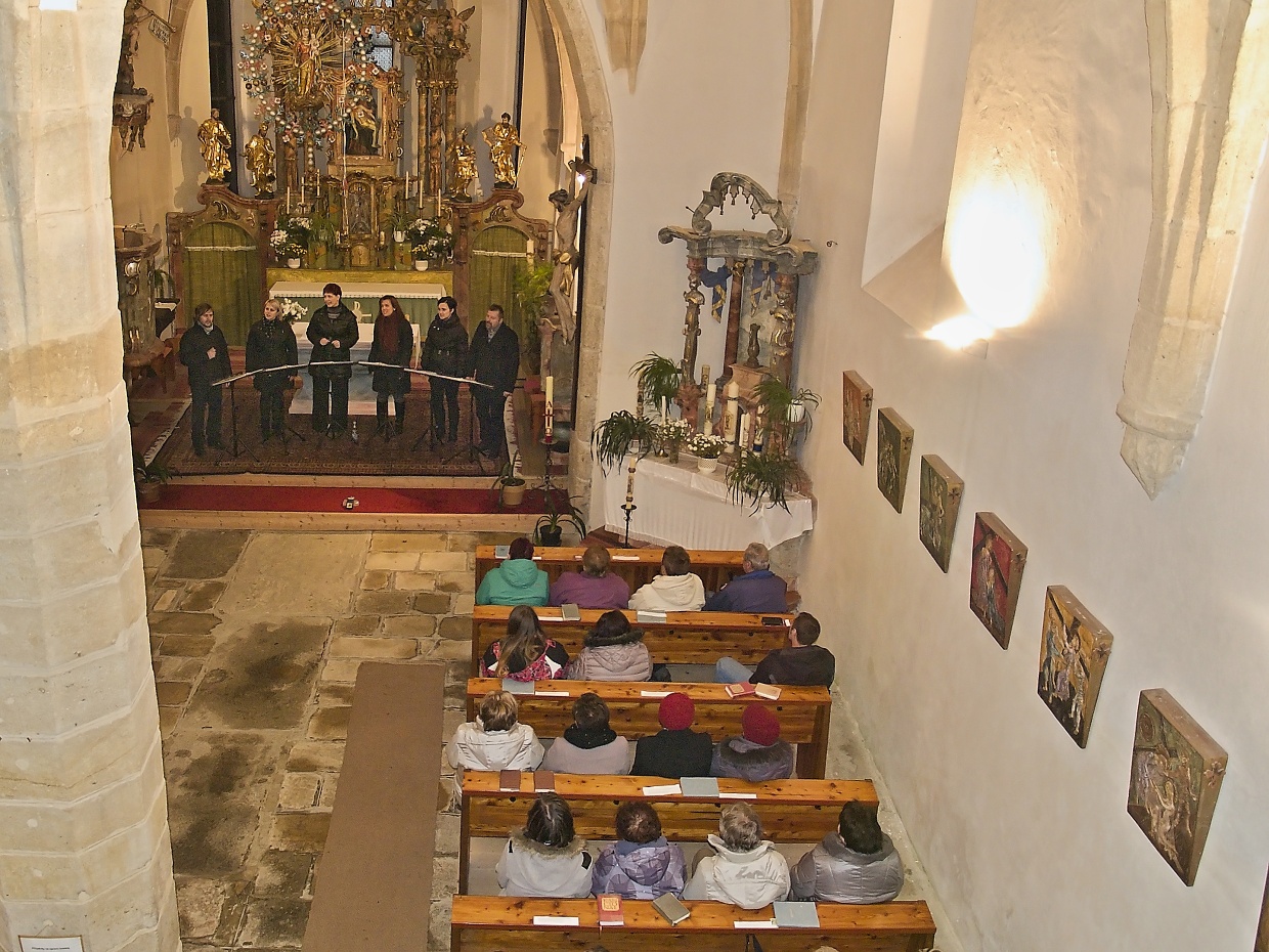 Sedmnáctý listopad tohoto roku jsme oslavili kulturou - obecní úřad uspořádal v našem kostele Narození Panny Marie koncert horšovskotýnské vokální skupiny Singtet. Podívat se přišlo něco málo přes 60 diváků a myslím, že nelitovali ani na chvilku. Viděli takřka hodinový program plný písní a skladeb, inspirovaných kapelami The King's Singers a 4TET. V repertoáru má skupina mnoho písní různých hudebních žánrů od Jaroslava Ježka, přes Beatles i populární skladby z osmdesátých let minulého století, jak sami říkají: "popinky" a to všechno zaznělo v krásném prostředí kostela. Malá galerie je zde: