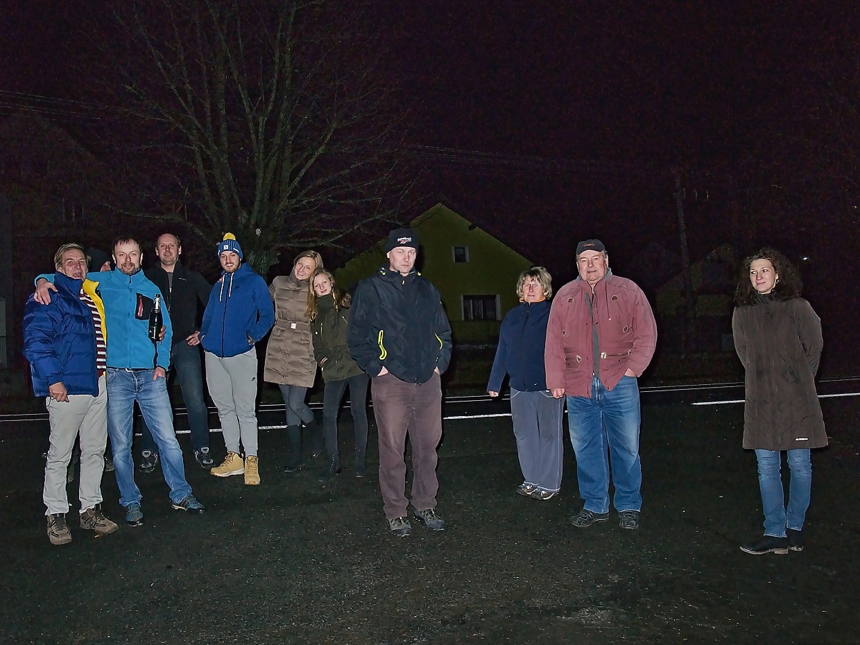 Krátce po silvestrovské půlnoci jsme se sešli na návsi, abychom si popřáli do nového roku 2018 a připili si na zdraví.