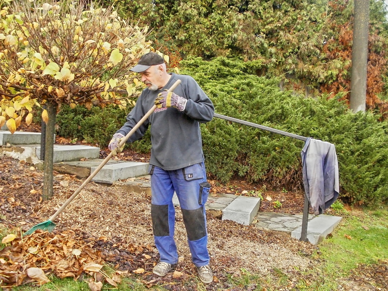 Druhý den nastoupily ženy na úklid listí před kostelem a na hřbitově. A kolem pomníku Jana Husa.