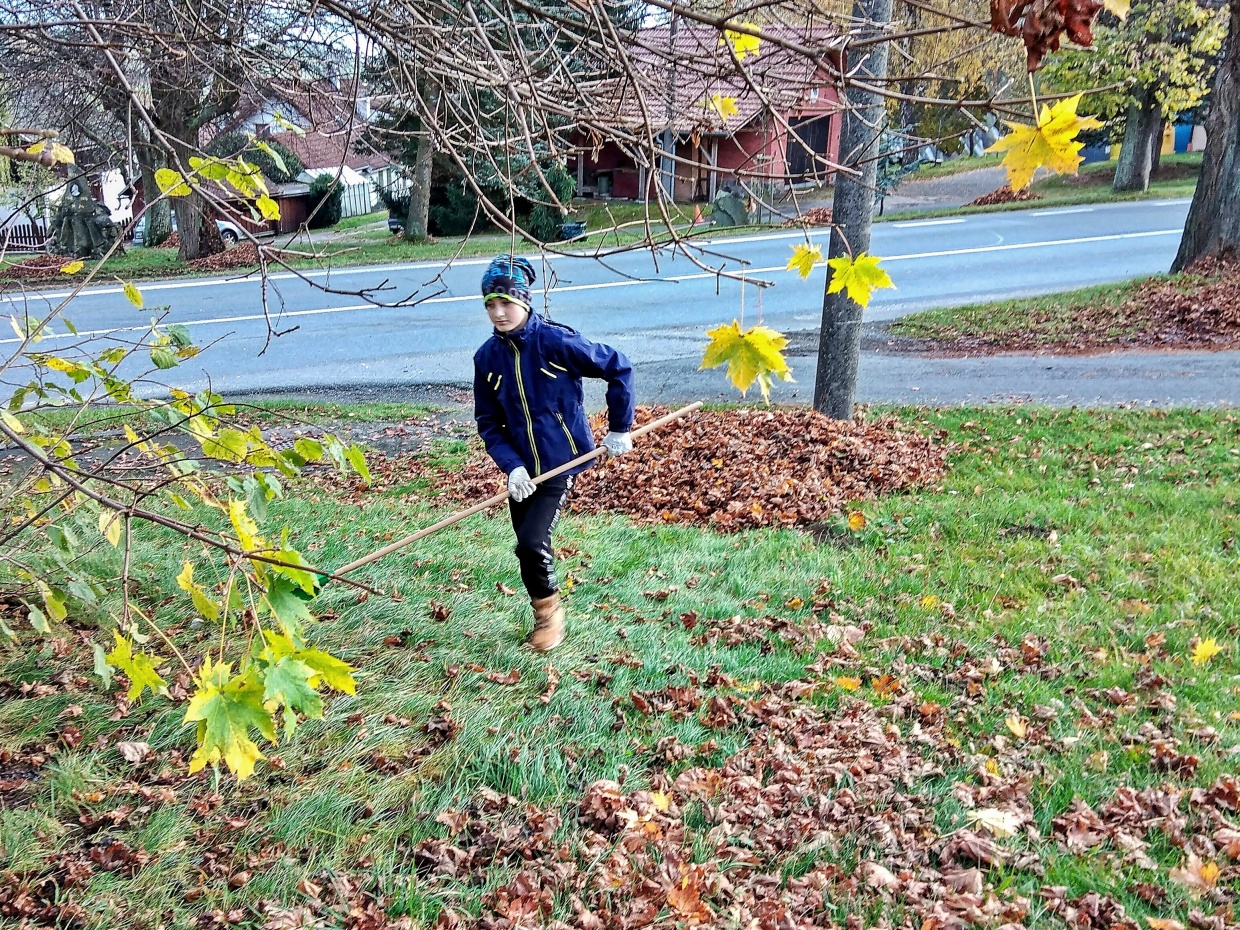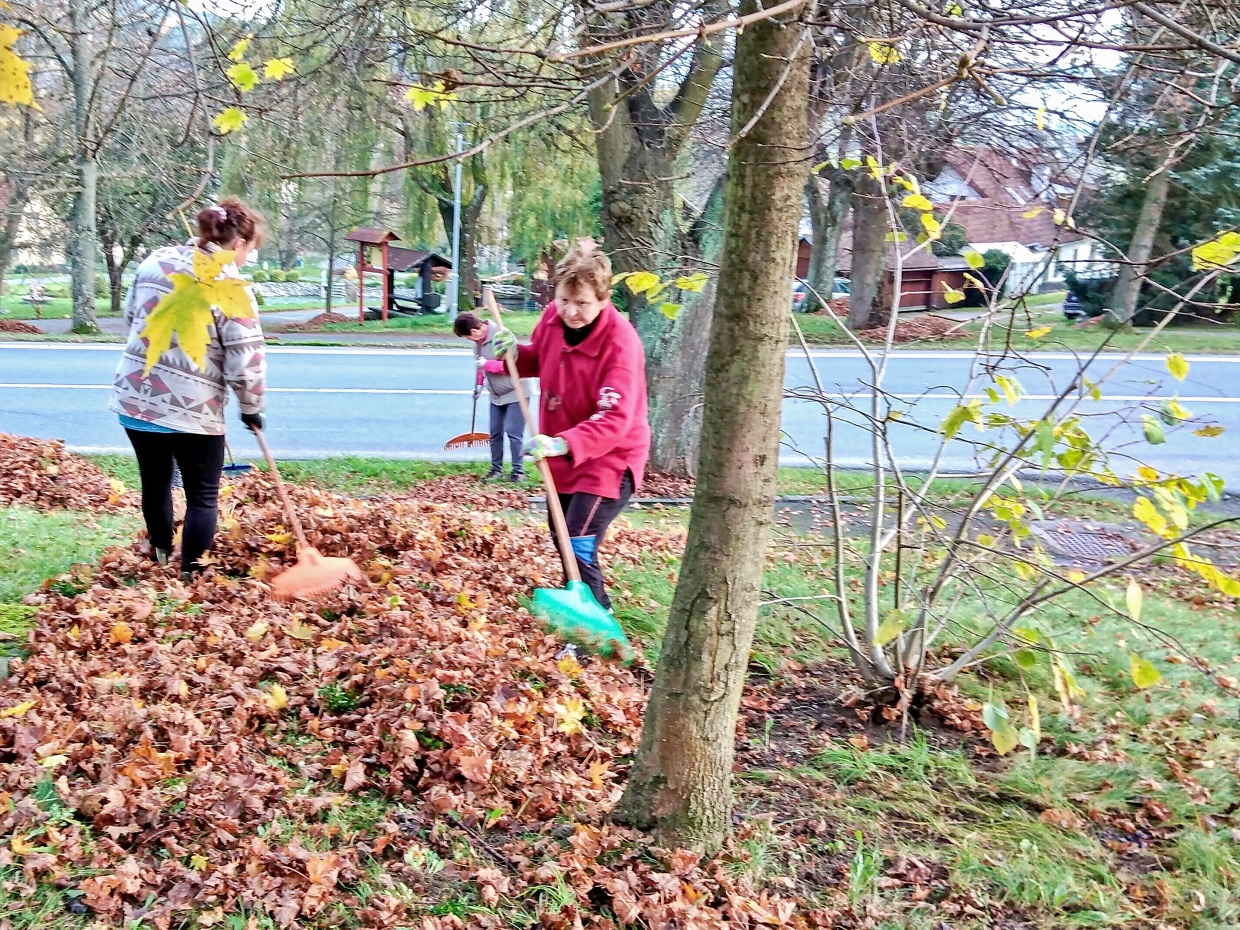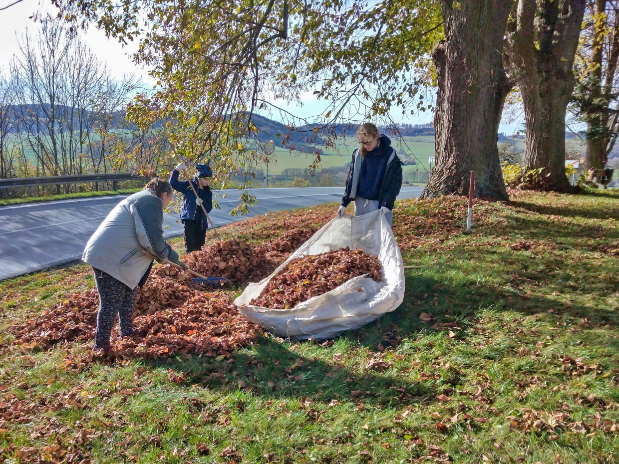 V pátek odpoledne 4 ženy a 2 chlapi a v sobotu dopoledne o jednu ženskou a další 2 chlapy více vyrazilo s hráběmi na náves a ke hřbitovu hrabat spadané listí. Z návsi pak v sobotu hromady zlikvidovalo dalších 5 mužů a traktor.