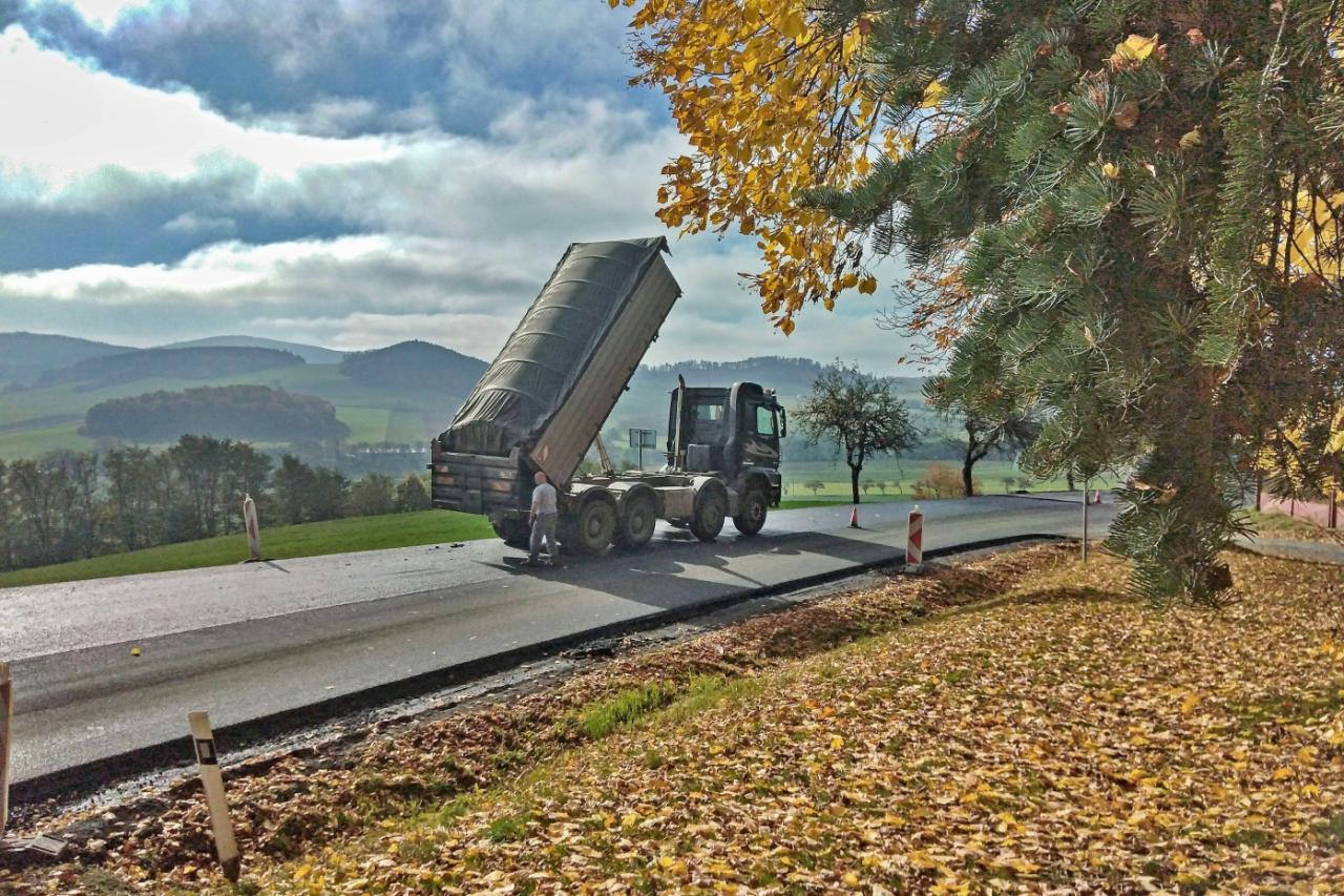 Svátek nesvátek, makalo se fest. Naše stálá sestava vyhrabala na hřbitově listí mezi hroby, silničáři zase natáhli finální povrch úseku od cedule do zatáčky pod kostelem.