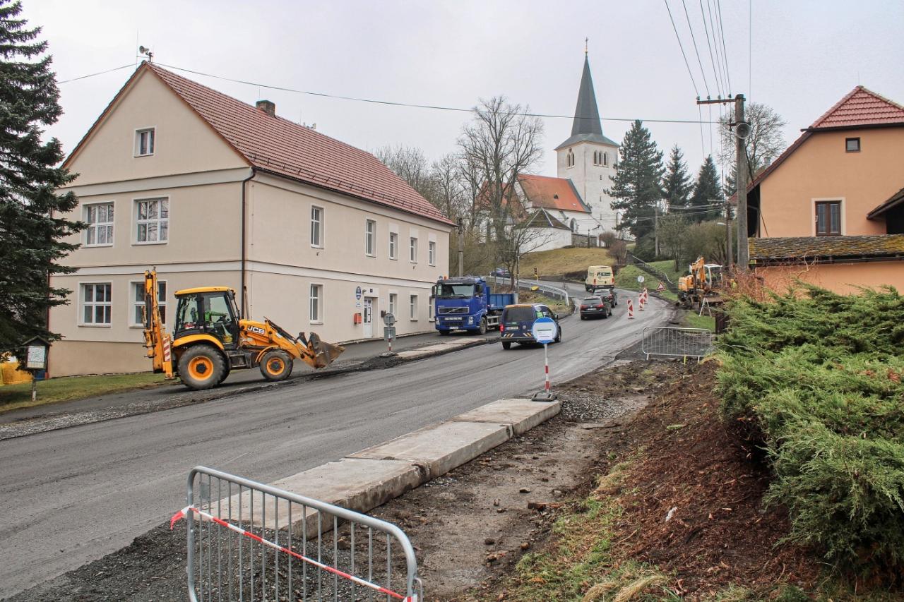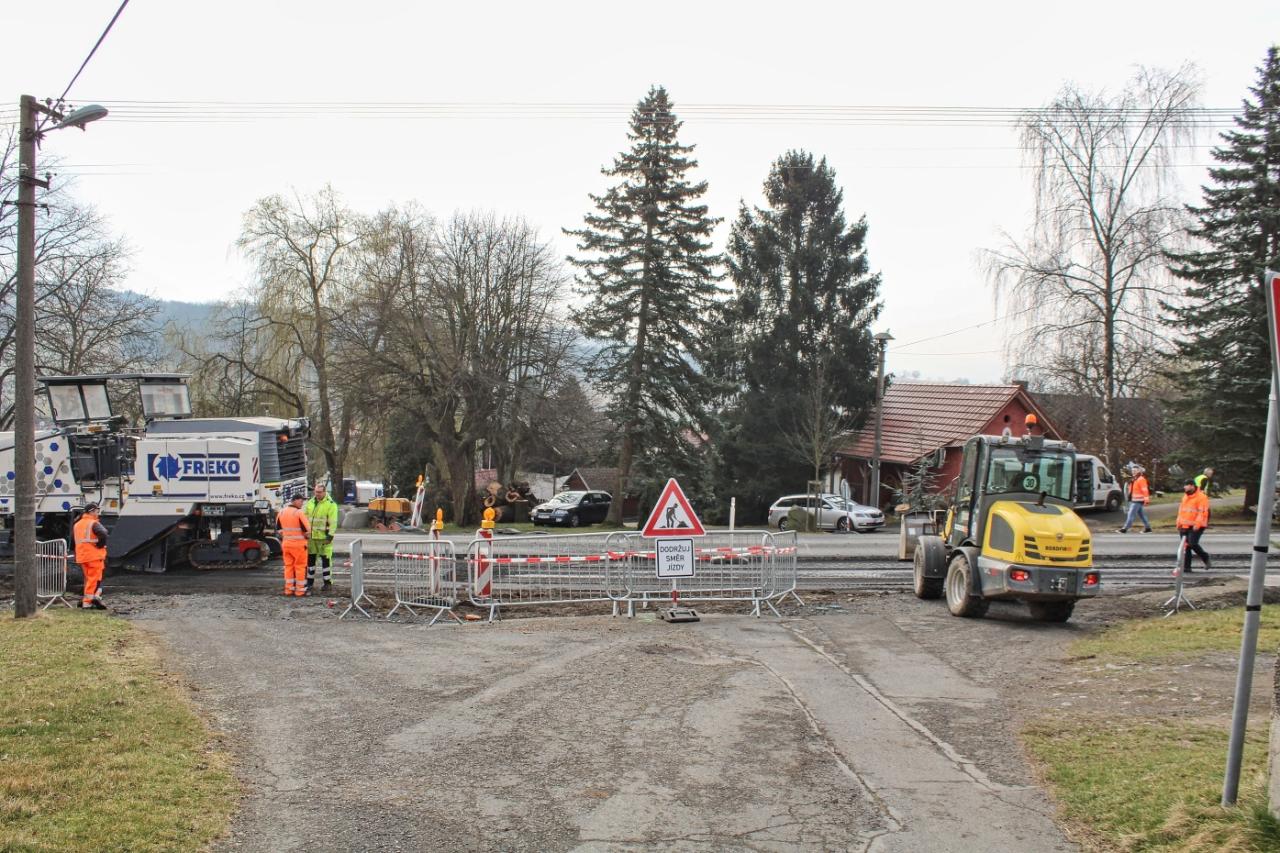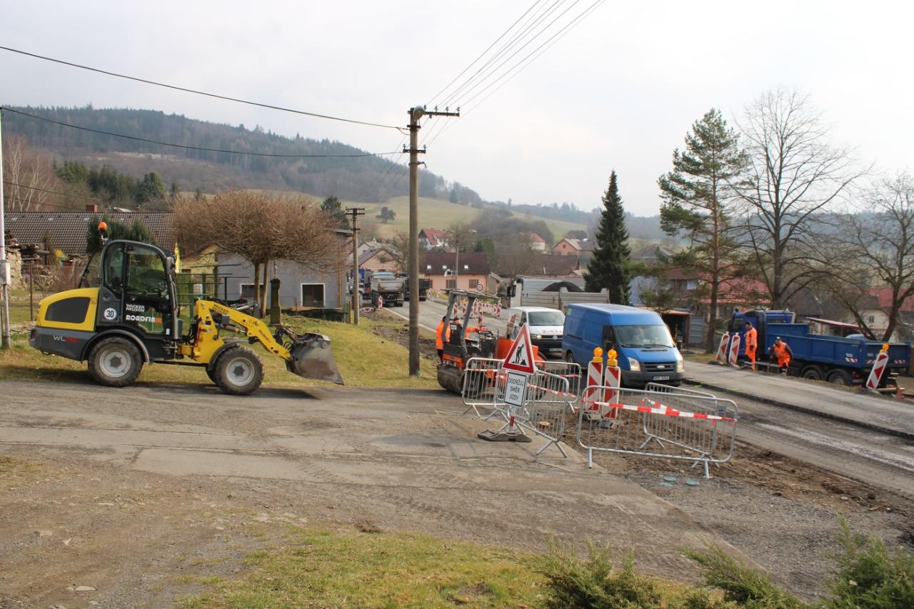 V pondělí 24.3. se začal frézovat levý pruh průtahu, o den později nám řekl stavbyvedoucí Roadfinu Patrik Vyleta: „V současné době máme vyfrézovanou polovinu, protože fréze se včera porouchal pás, pokračovat se bude ve středu, od čtvrtka by měly probíhat práce na demontáži mostního objektu vedle hospody, což by mělo trvat přibližně 10 dní. Jde o to, že se tam musíme provést všechny stoky, až už se jedná o splaškovou a dešťovou kanalizaci a taky o vodu shora nad obcí. Souběžně budou probíhat práce na položení splaškové kanalizace, ty budou probíhat pořád. Po odfrézování budeme kopat štěrky, začneme provádět skrývku konstrukčních vrstev, aby kolegové mohli udělat dešťovou kanalizaci, která bude v polovině levého jízdního pruhu ve směru na Klatovy."