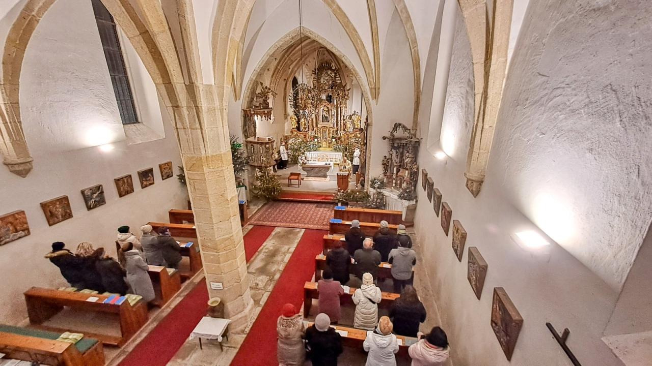 Obrázky z půlnoční mše na Štědrý den a na Boží hod vánoční 25.12. fotografovala Martina Matějková, květinovou výzdobu kostela darovalo Občanské sdružení Tanaberk.