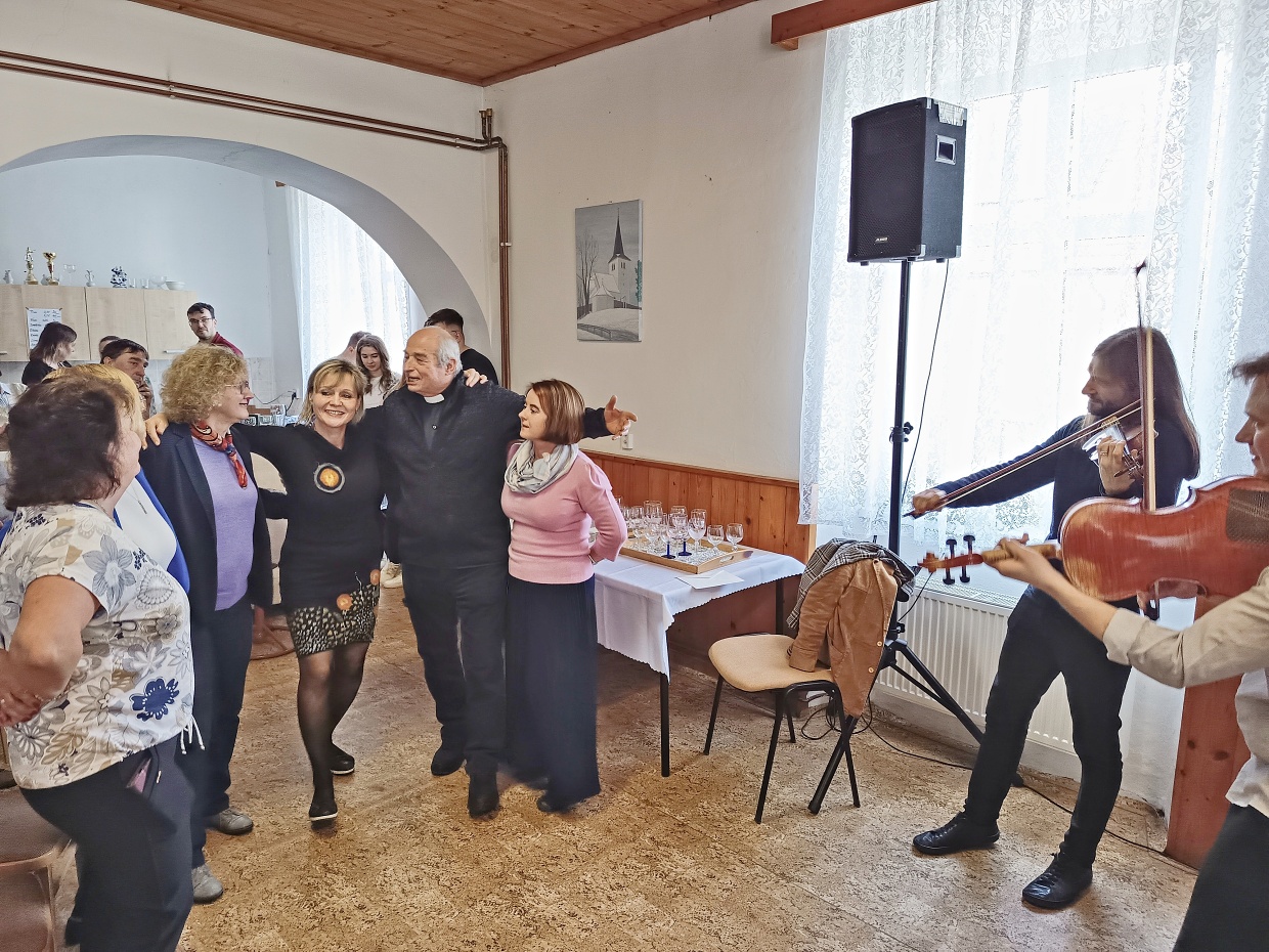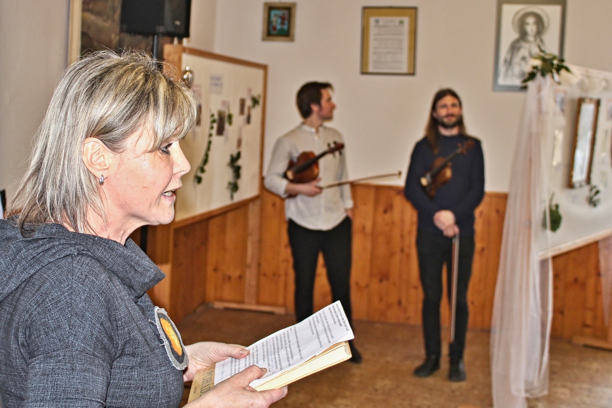 Vtipnou řečí zahájila Vlaďka Kacerovská, o manželské instituci pohovořil p. Miroslav Kratochvíl, houslisté Jaroslav a Dominik Cvekovi, ač Moraváci, brilantně zahráli a zazpívali chodskou muziku, rozdalo se víno na přípitek a potom už se každý mohl vrátit o desítky let zpátky.