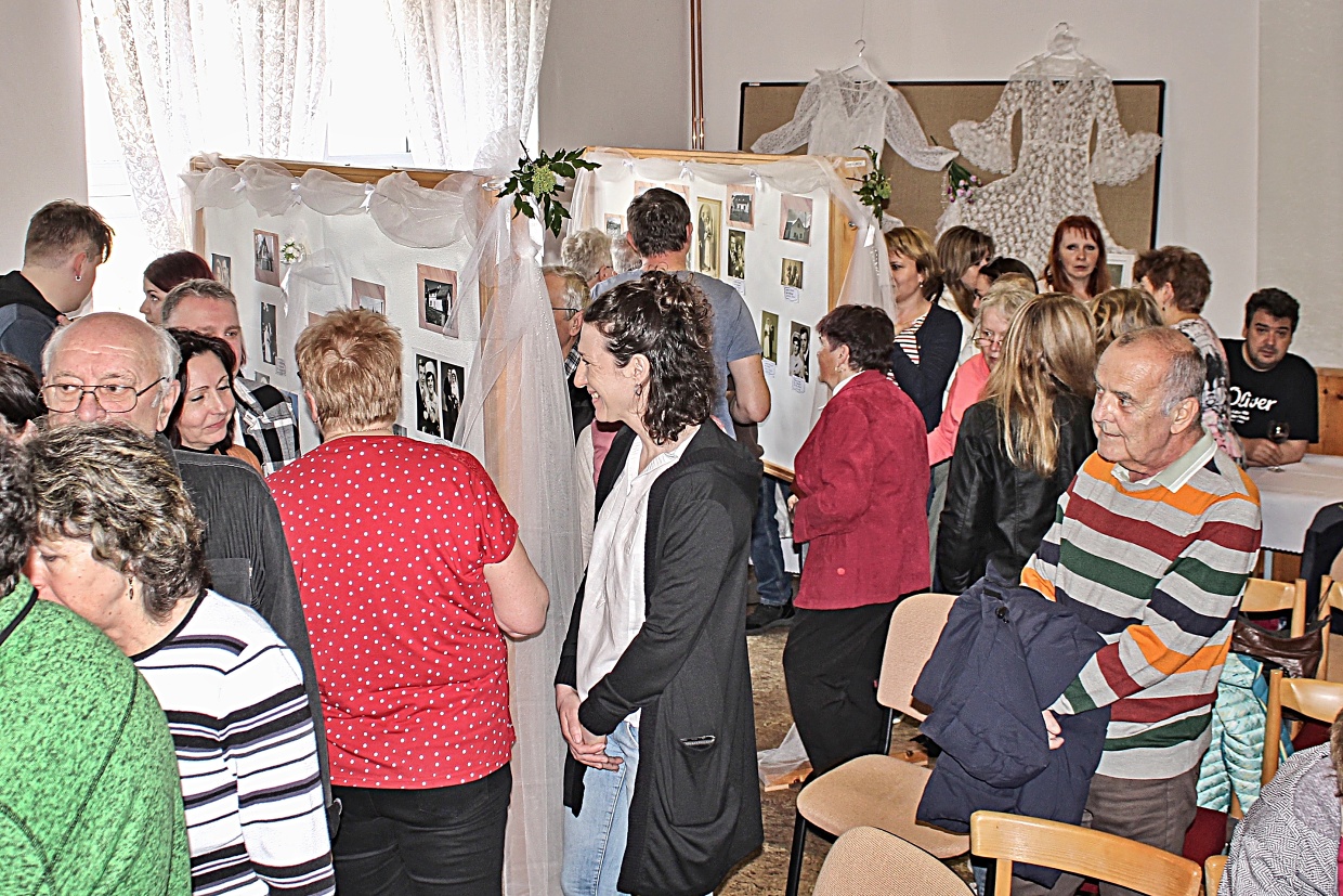 Vzhledem k tomu, že aktivní členky spolku lze spočítat na prstech jedné ruky zdálo by se, jestli si nestanovily příliš velký úkol. Musely totiž obejít jednotlivé rodiny a poprosit je o prohledání šuplíků a zapůjčení svatebních fotek třeba i 50 let starých! Spolupracovat se rozhodlo úctyhodné množství 28 rodin! Fotky bylo nutno okopírovat, navěsit je na panely, vyzdobit sál a tím by to mohlo skončit, ovšem když vernisáž, tak se vším všudy.