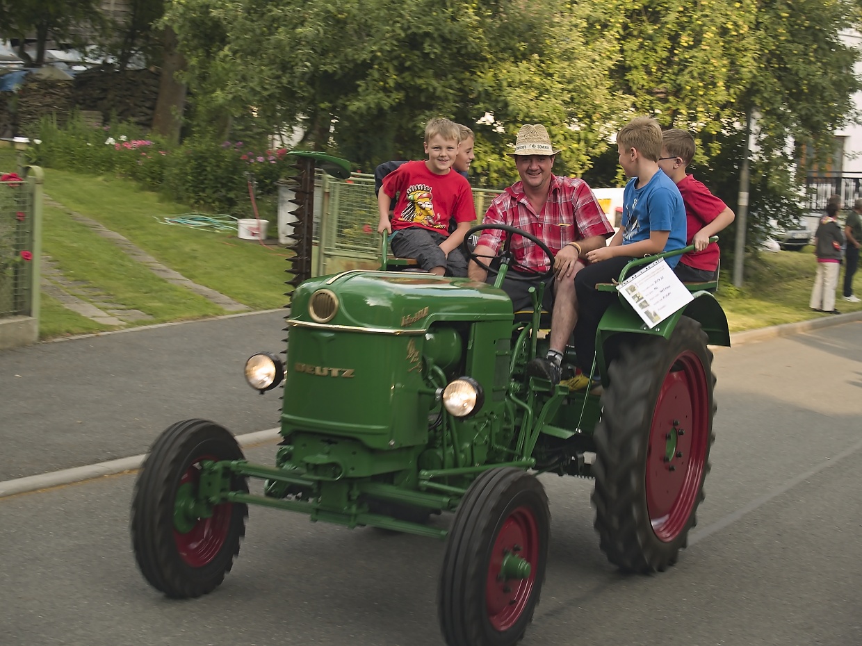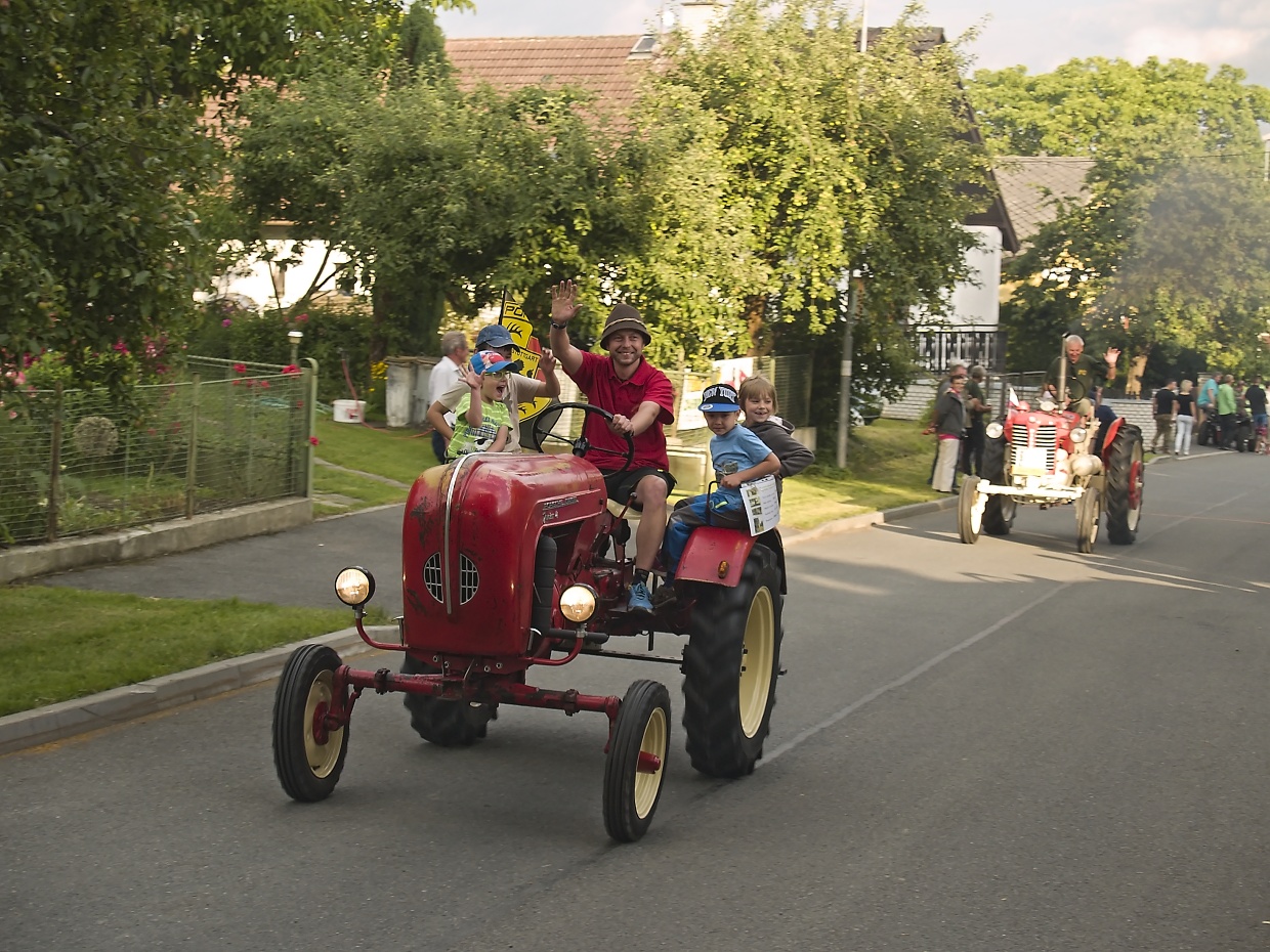 Couvání traktorů završila spanilá jízda veteránů Libkov – Jako o pouti to vypadalo v sobotu 16. července při šestnáctém ročníku couvání traktorů s vlekem o pohár starostky obce. K rybníku na návsi se v pozdním odpoledni přišlo podívat víc než 450 platících diváků, dalších téměř 150 lidí se účastnilo závodu a hlavně výstavy historických traktorů, motocyklů i osobních automobilů, kterou završila v titulku zmíněná spanilá jízda. Ještě předtím se však na okruhu dlouhém 550 metrů odehrála soutěž sedmi traktoristů, kteří se tohoto klání zúčastňují prakticky pravidelně. První traktor s vlekem řídil podle vylosování Jiří Červený z Úsilova, jenž projel trať za 4 minuty 58 sekund a tím nasadil laťku tak vysoko, že ji nepřekonal ani jeho největší soupeř Radek Němeček z Libkova, který startoval jako poslední. Letos časem 5:04 obsadil druhou příčku a nevyplnily se tak předpovědi, že to nejlepší je vždycky naposled. Všechny ročníky couvání jsou ovšem kláním přátelským a zrovna tihle dva borci se na prvním místě téměř pravidelně střídají. Z louky plné veteránů všeho druhu včetně titěrných malých motocyklů Jawa 050 pozorovala závod skupina majitelů veteránů z Loučimi, z nichž Tomáš Franc (dva špičkově upravené traktory) poznamenal: „Já bych si takový kus couvat s vlekem asi netroufal. I když ti chlapi jezdí traktorem denně, stejně je to umění.“ Po vyhlášení vítězů závodu v couvání a předání pohárů, věcných cen věnovaných sponzory a finančních odměn absolvovali veteráni dvě kolečka jízdy za nadšené pozornosti diváků, jimž nevadil ani kouř z výfuků z doby, kdy katalyzátor bylo neznámé slovo. Jako každý rok zajistili pořadatelé kvalitní občerstvení, zastřešené posezení a hudební doprovod skupiny Relax, která na závěr večera zahrála k tanci na parketu na rybníce. Celou akci zhodnotila starostka Libkova Barbora Černá s úsměvem: „Je to pro nás velká akce, na níž se podílelo 30 lidí, bez kterých by to nešlo. Trochu jsme měli obavy z počasí, ale i to nakonec vyšlo, takže jsme spokojení.“ Nutno ještě dodat, že i ve větších obcích (Libkov má cca 120 obyvatel) se jen málokdy sejde na pouti tolik lidí, o to větší je zásluha místních na uspořádání podobné akce. Výsledky: 1. Červený Jiří, Úsilov 4:58 2. Němeček Radek, Libkov 5:04 3. Köhn Eric, Mlýnec 5:37 4. Hvostál Pavel, Strašín 6:41 5. Rubáš Miroslav, Srby 7:16 6. Šrámek František, Dolany 7:33 7. Straka Václav, Úsilov 8:32 Článek v DD 18.7.2016