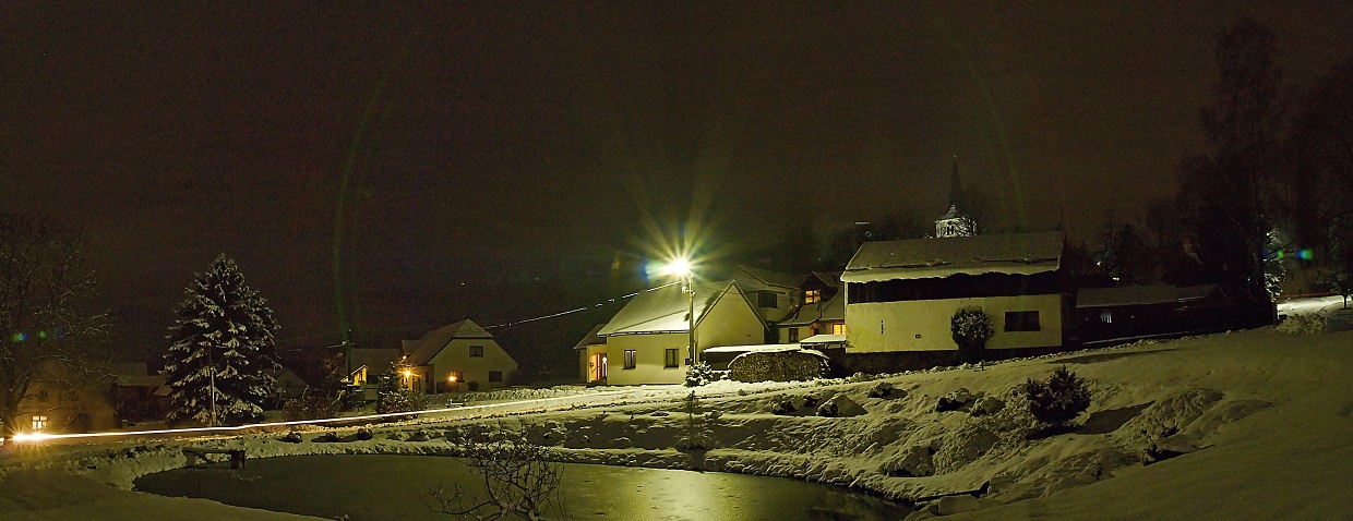 Kolem šesté hodiny večerní 28. prosince 2018 nejen rozsvícený stromek, ale i náves.