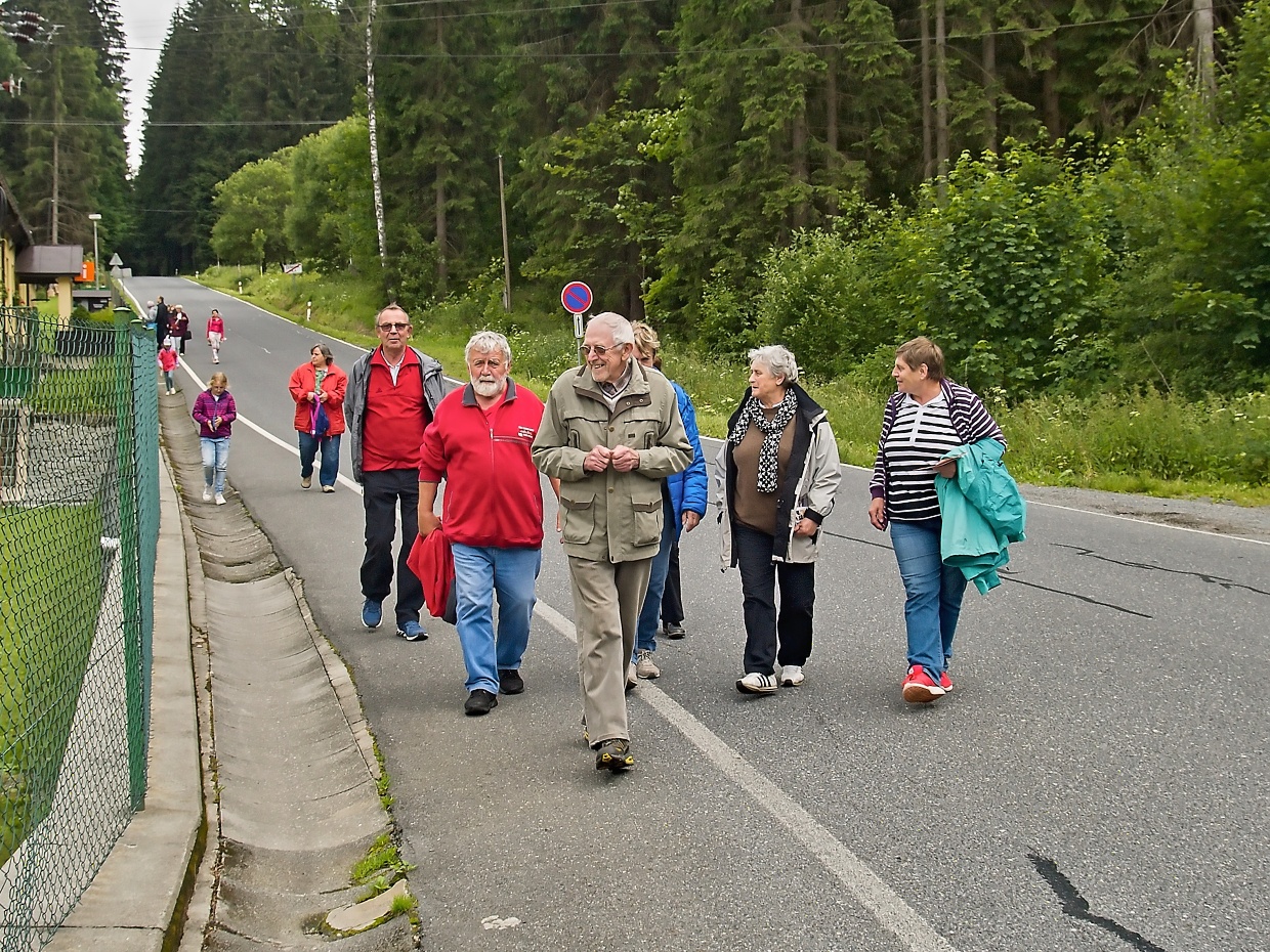 Trasa: Nýrská přehrada a ukázky fotografií zatopeného Úhlavského údolí, dále to bylo nádraží Železná Ruda-Alžbětín, Kašperské Hory a Muzeum Šumavy (a taky oběd), komentovaná prohlídka kostela sv. Mikuláše tamtéž, exkurze ve vodní elektrárně Vydra a Čeňkova pila a Prášily a tamní botanická zahrada. Jen z autobusu (začalo trochu pršet) jsme se na závěr podívali na zaniklou vesnici Zhůří. Na každé zastávce i cestou nám Václav Mráz (čp. 27) povyprávěl spoustu zajímavostí, tamže zájezd to byl poznávací a velmi zajímavý!