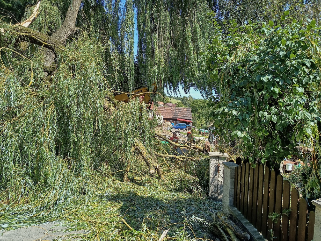 ...aneb jak se idylické dopoledne v málem tragické odpoledne změnilo, když se ze vzrostlé vrby u kovárny ulomila docela silná větev. Podivné bylo, že nefoukal téměř žádný vítr.