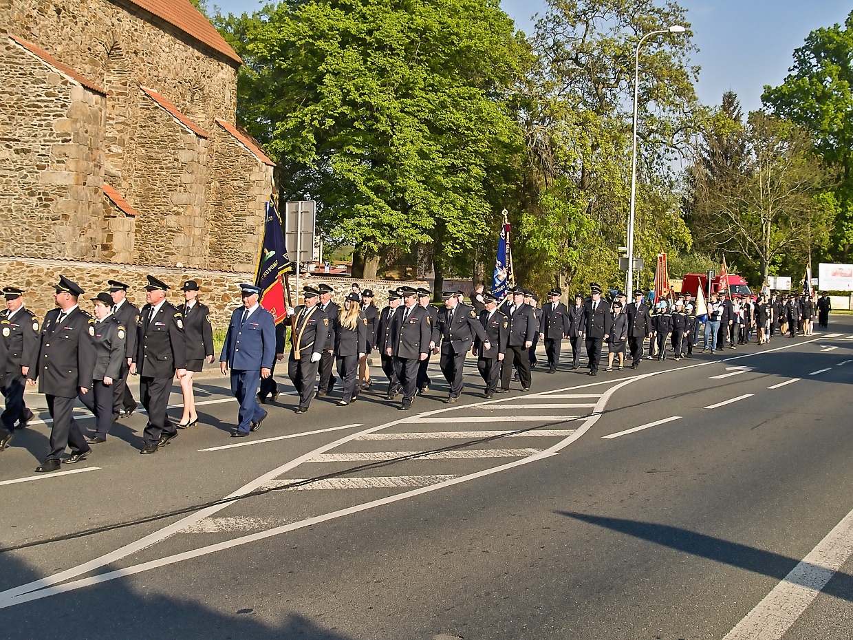 V pátek 4. května jsme se spolu se lhoteckými zúčastnili s prapory průvodu k uctění patrona především hasičů, ale taky kominíků a kovářů, svatého Floriána. Ten je také vzýván proti nebezpeční ohně a vody, při suchu a neúrodě, což budeme patrně letos potřebovat.