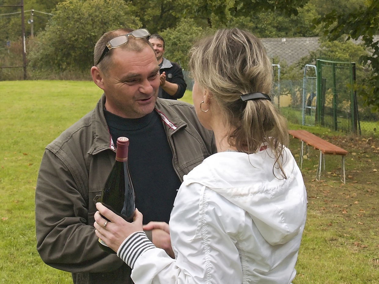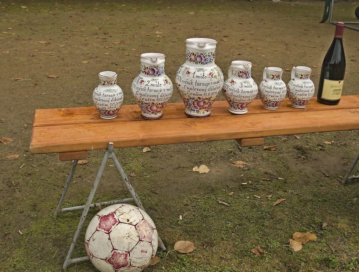 Článek pro DD: Do malovaných džbánků nenapršelo Loučim – Letošní 24. ročník turnaje v malé kopané „O malovaný džbánek“ uspořádal místní Sokol na svém hřišti v sobotu 13. září a přes nepříznivou předpověd počasí i datum podařilo se čtyřem zúčastněným družstvům odehrát všech 12 zápasů bez dešťových kapek. Na turnaj přijel jeho pravidelný účastník Pája team z Mariánských Lázní, z obce Rybník na druhém konci domažlického okresu přijela hned dvě družstva (byť jedno muselo být doplněno hostujícími hráči), čtvrtým do party byli Bahňáci ze Kdyně. Celý turnaj poctivě a férově odpískal Petr Švícarský a stejně férově se tentokrát i hrálo. Po celodenním pátečním dešti nebyl trávník kupodivu příliš podmáčený a tak všichni hráli s maximálním nasazením. Začínalo se v deset, výsledky pořadatelé vyhlásili odpoledne ve čtyři. Na čtvrtém místě skončili hráči Rybníka, třetí místo obsadilo též mužstvo Rybníka, hrající s názvem FC- HBC CH.A.O.S, džbánek za druhé místo si odvážejí Bahňáci do Kdyně a do Mariánských Lázní tentokrát po třetí v řadě putuje největší džbánek s chodskými motivy za první místo! „Je to historicky poprvé, co nějaký manšaft tři roky po sobě obsadil první míst,“ zhodnotil výkon mariánskolázeňských Jiří Grösl, který dohlížel na správnost zápisu zápasů i počtu vstřelených gólů. Pája team je navíc účastníkem s nejvyšším věkovým průměrem. Ze stejného mužstva je i nejlepší střelec Rudolf Kojmar s 11 góly i nejstarší aktivní hráč Miloš Richtr – 63 let. „Na příští rok připadne čtvrtstoletí pořádání Džbánku,“ řekla starostka Sokola Vladimíra Kacerovská, „a tohle výročí bysme rádi oslavili nejen kvalitně připravenou organizací turnaje, ale také výstavou fotografií z minulých ročníků. A pokud přijede o pár mužstev víc, rádi je přivítáme!“
