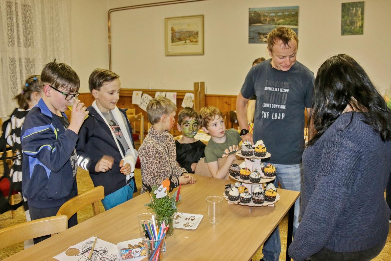 Místo na strašidelné stezce vydováděla se strašidla i příchozí děti a dospěli v budově Obecného úřadu. Důvod byl prostý, v pátek 4. celý den vydatně pršelo a pořádat podobnou akci na blátě nemělo smysl.