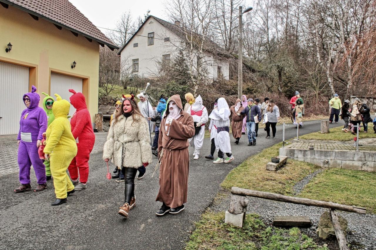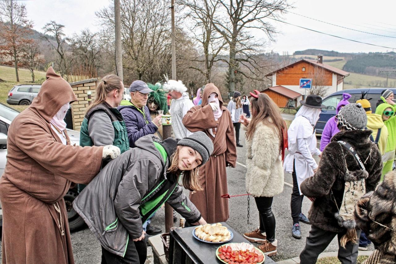 V sobotu 10. února odpoledne bylo ve znamení masopustu. Na okružní cestu obcí vyrazilo celkem 27 masek, tři muzikanti a výběrčí daní. A bylo to letos hodně veselé a hlavně hlučné.