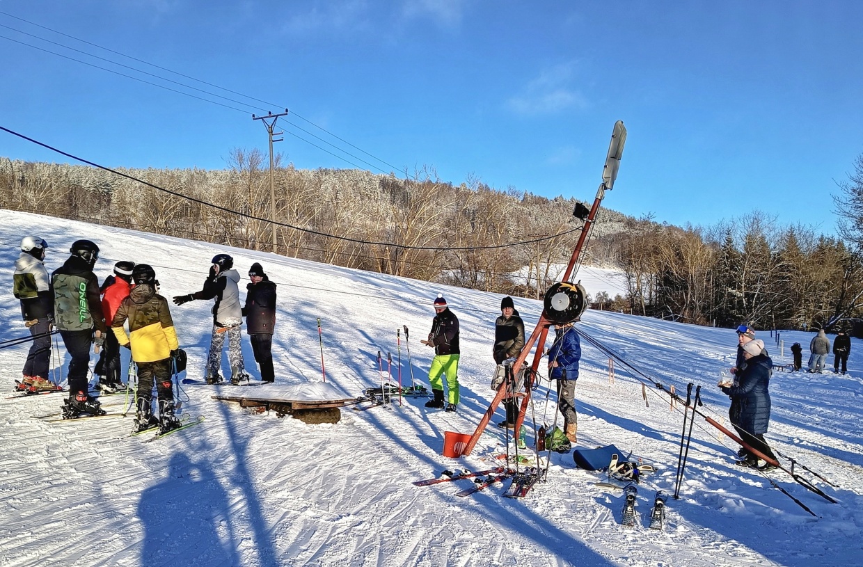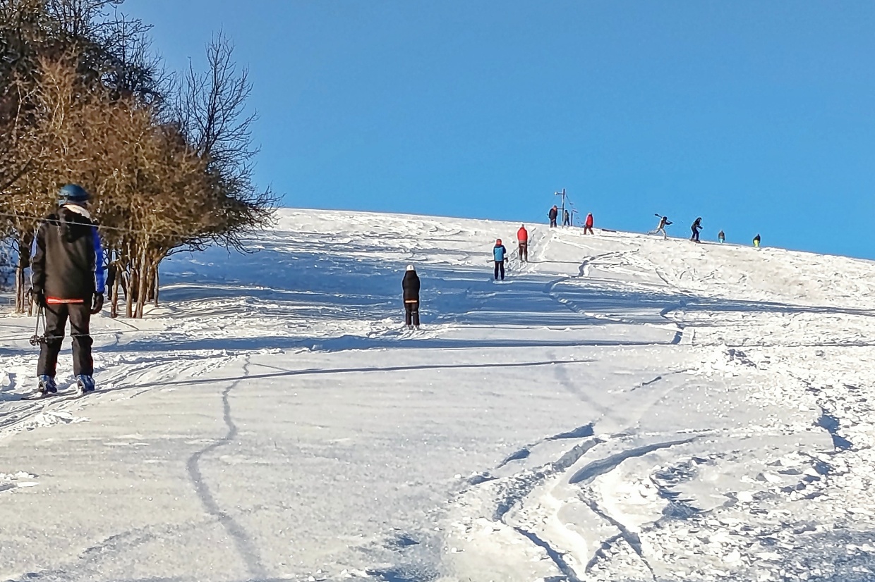 Po několika letech s minimální anebo vůbec žádnou sněhovou nadílkou jsme se letos dočkali. Pravá zima začala před Vánoci a zatím pořád trvá, takže sjezdovka na humny v neděli 11. ledna ožila!